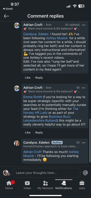 Real example: Just last week, I saw that someone tagged me in a LinkedIn comment thread recommending my content to another pro in their network – because they’d seen me show up consistently and remembered my name.